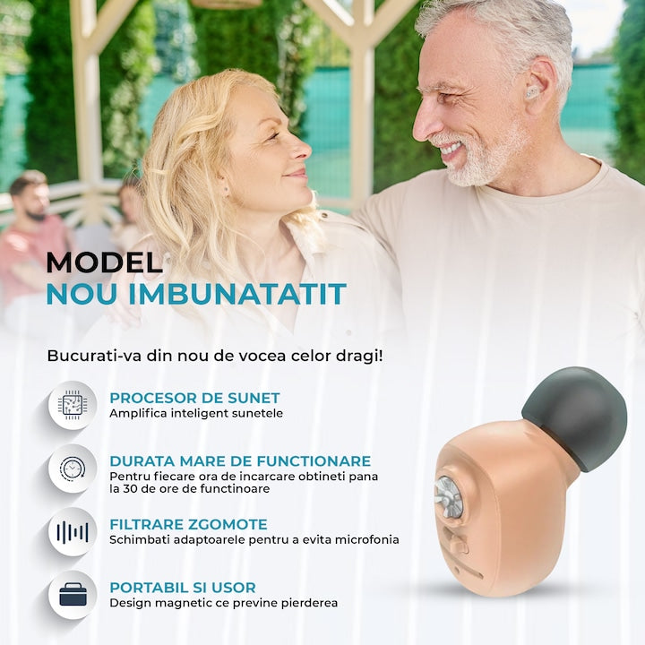 - Amplificare eficienta a sunetului: Ofera o amplificare clara pentru a va ajuta sa auziti mai bine conversatiile, muzica si sunetele ambientale.